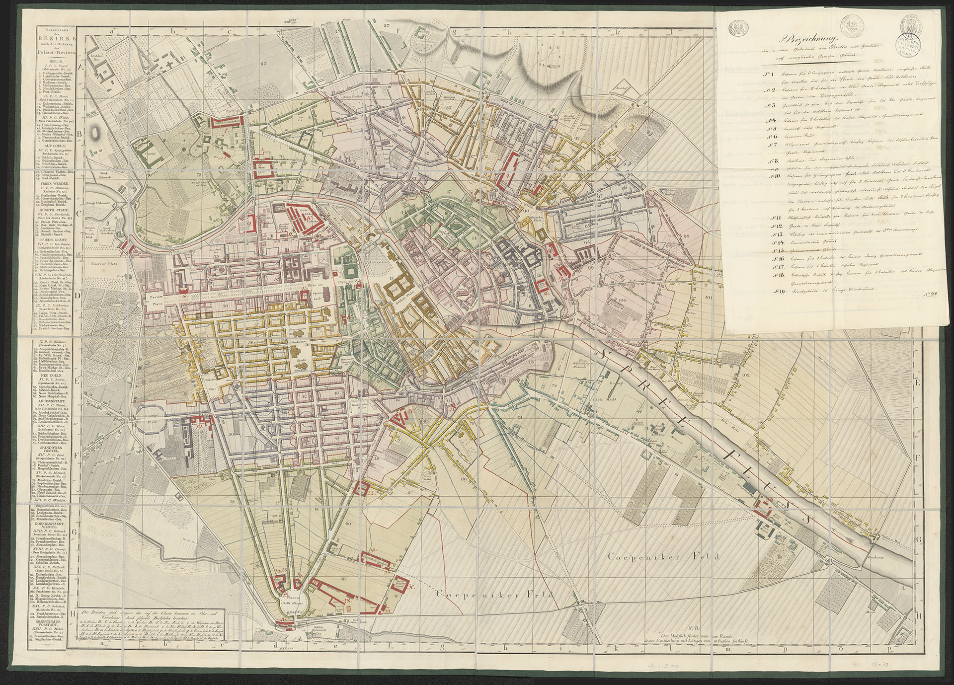 GRUNDRISS Berlin von neuem aufgenommen und mit Genehmigung der Königl. Academie der Wissenschaften herausgegeben von J.C. Selter. im Jahr 1804 gestochen von C. Mare. Neue Auflage 1811.