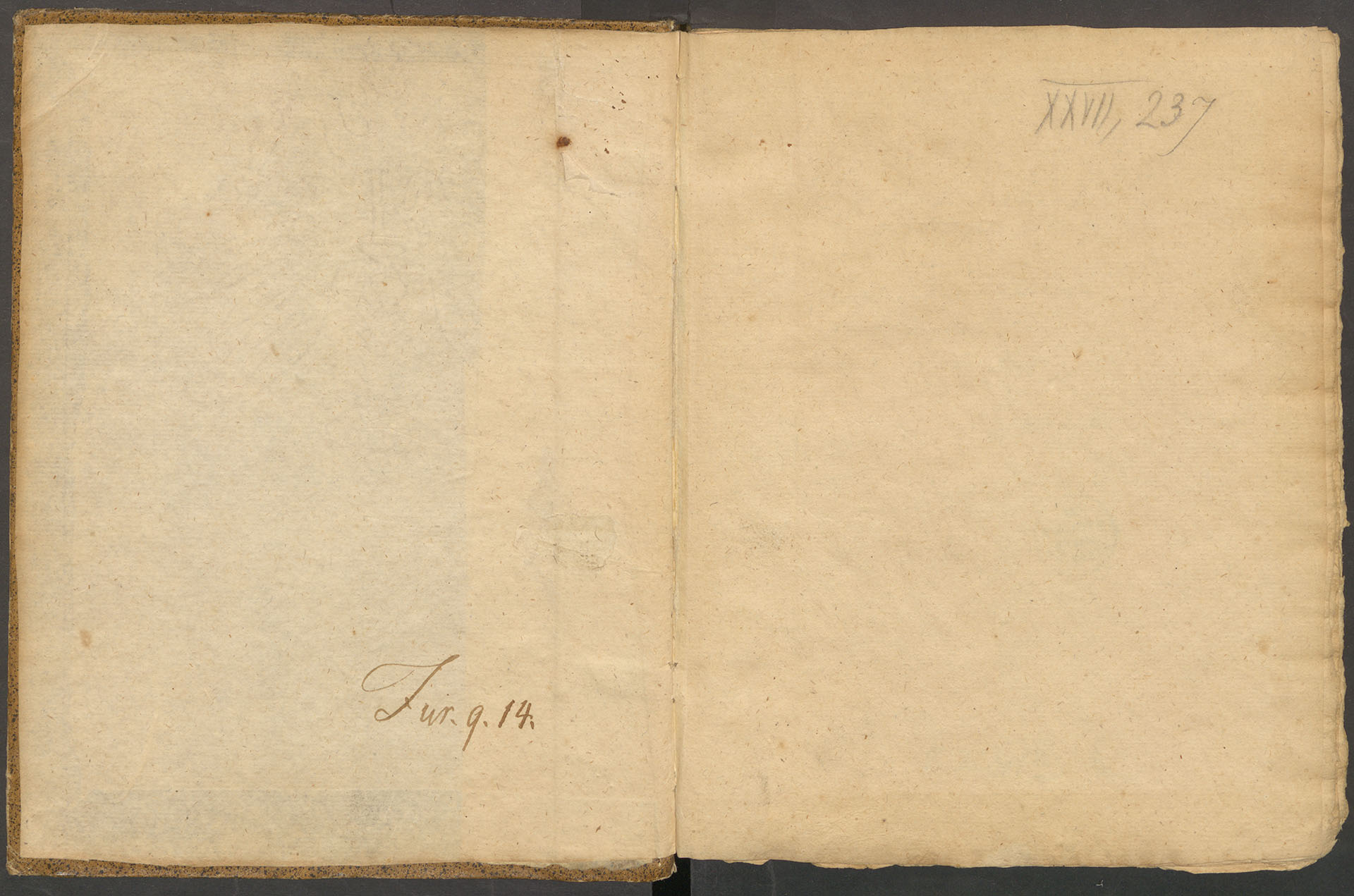 Bemerkungen aus des Philipp Ernst Bertrams Vorlesungen über Georgi Ludovici Boehmeri „Pricipia juris feudalis praesertim Longobardici quod per Germaniam obtinet” gesammelt von A. Contius - wyklejka z sygnaturą: Jur. q. 14 i karta ochronna z sygnaturą XXVII, 237