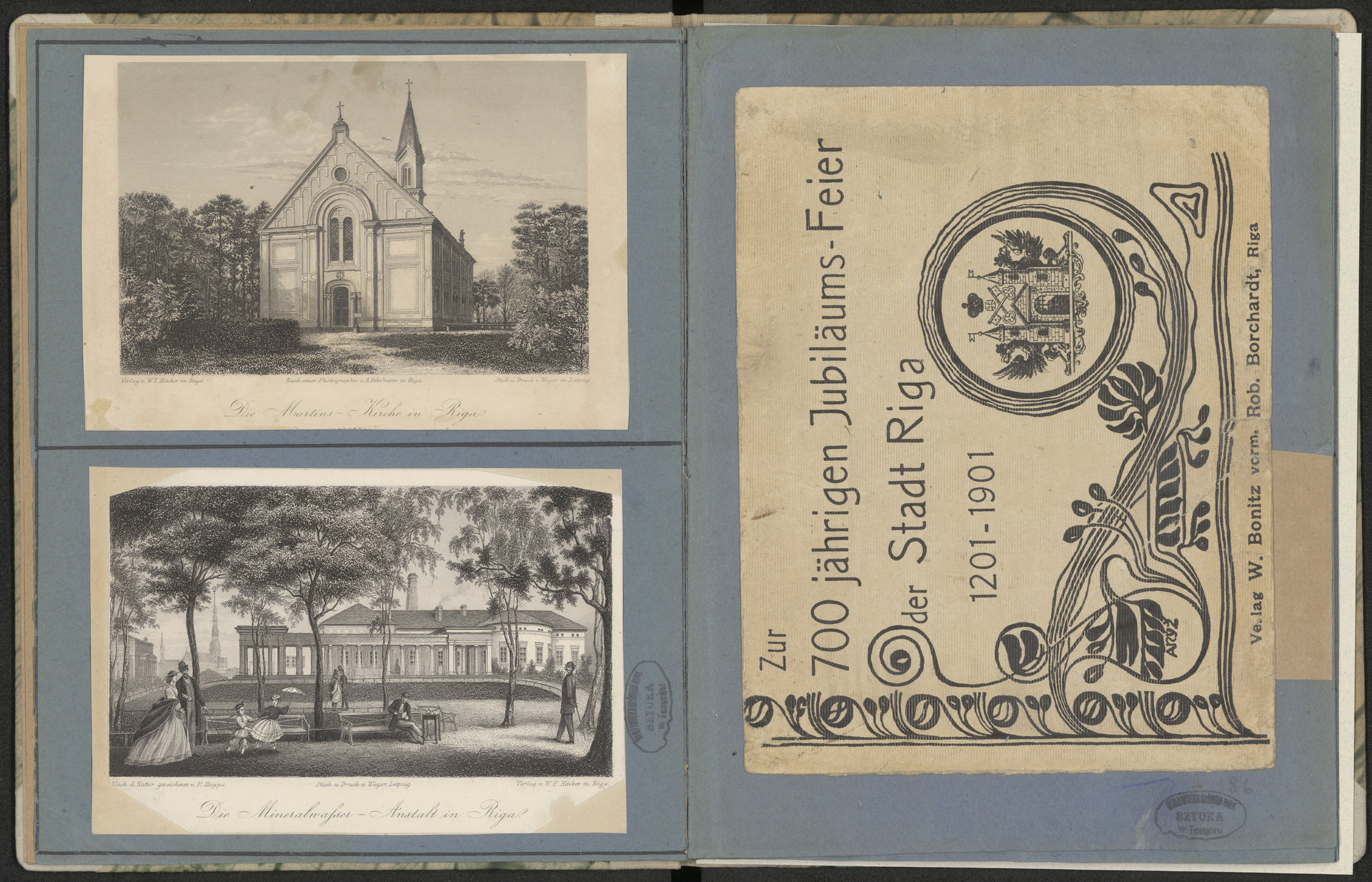 Zur 700 jährigen Jubiläums–Feier der Stadt Riga 1201-1901 - karta z rycinami