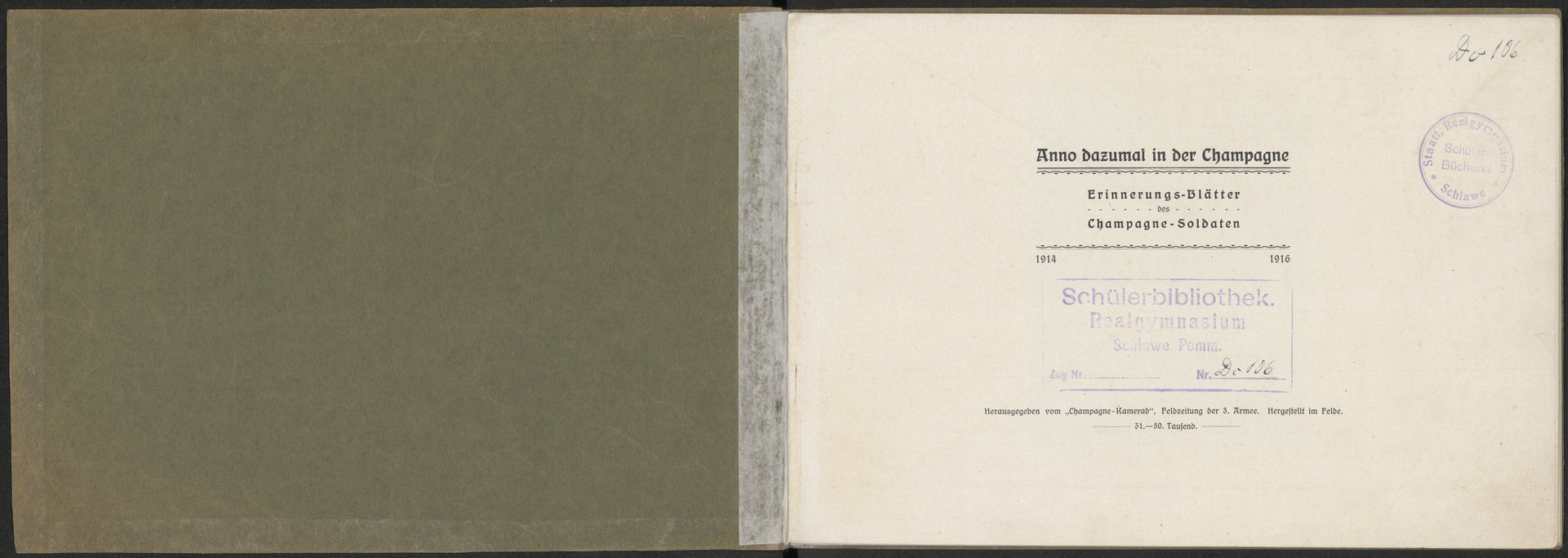 Anno Dazumal in der Chapagne. Erinnerungs-Blätter des Champagne-Soldaten, 1914-1916 - strona tytułowa wraz z pieczątkami