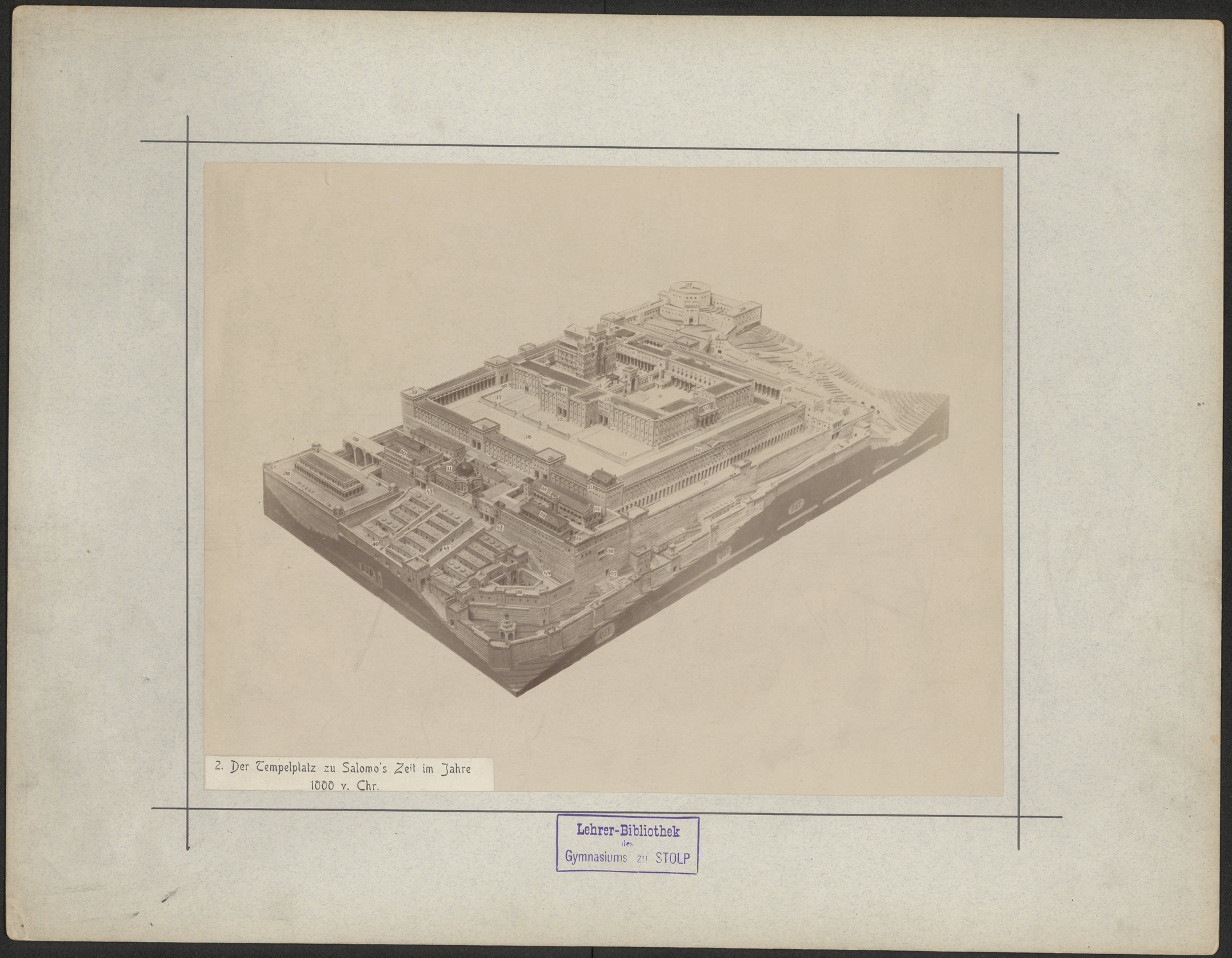 Der Tempel und der Tempelplatz in Jerusalem im Verlauf der Jahrtausende - karta fotografii 2 z pieczątką prostokątną Lehrer-Bibliothek des Gimnasiums zu STOLP