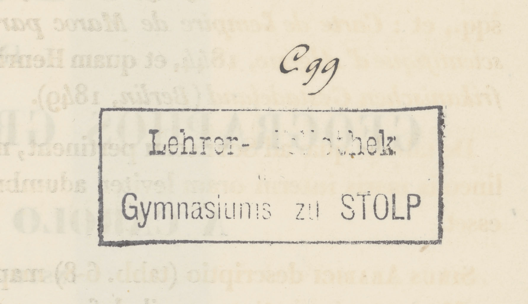GEOGRAPHI GRAECI MINORES. TABULAE IN GEOGRAPHOS GRAECOS MINORES A CARLO MULLERO INSTRUCTAE. PARS PRIMA - prostokątna pieczątka: Lehrer-Bibliothek des Gimnasiums zu STOLP