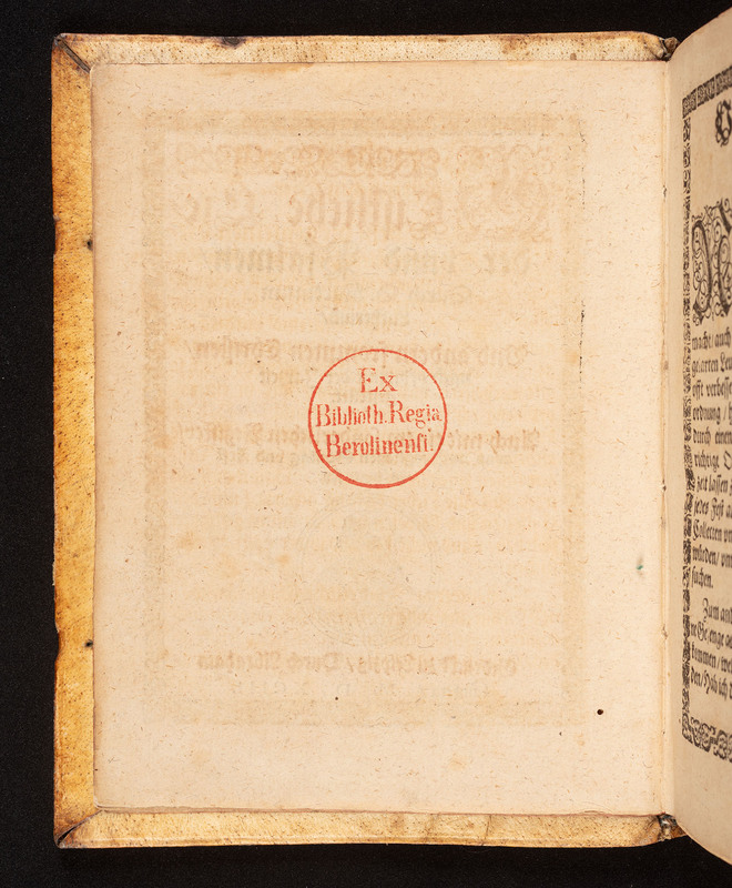 Geistliche Lieder vnnd Psalmen, Durch D. Martinum Lutherum, Vnd andern frommen Christen, nach ordnung der Jarzeit gestellet. - okrągła pieczątka „Ex Biblioth. Regia Berolinensi.” na verso karty tytułowej