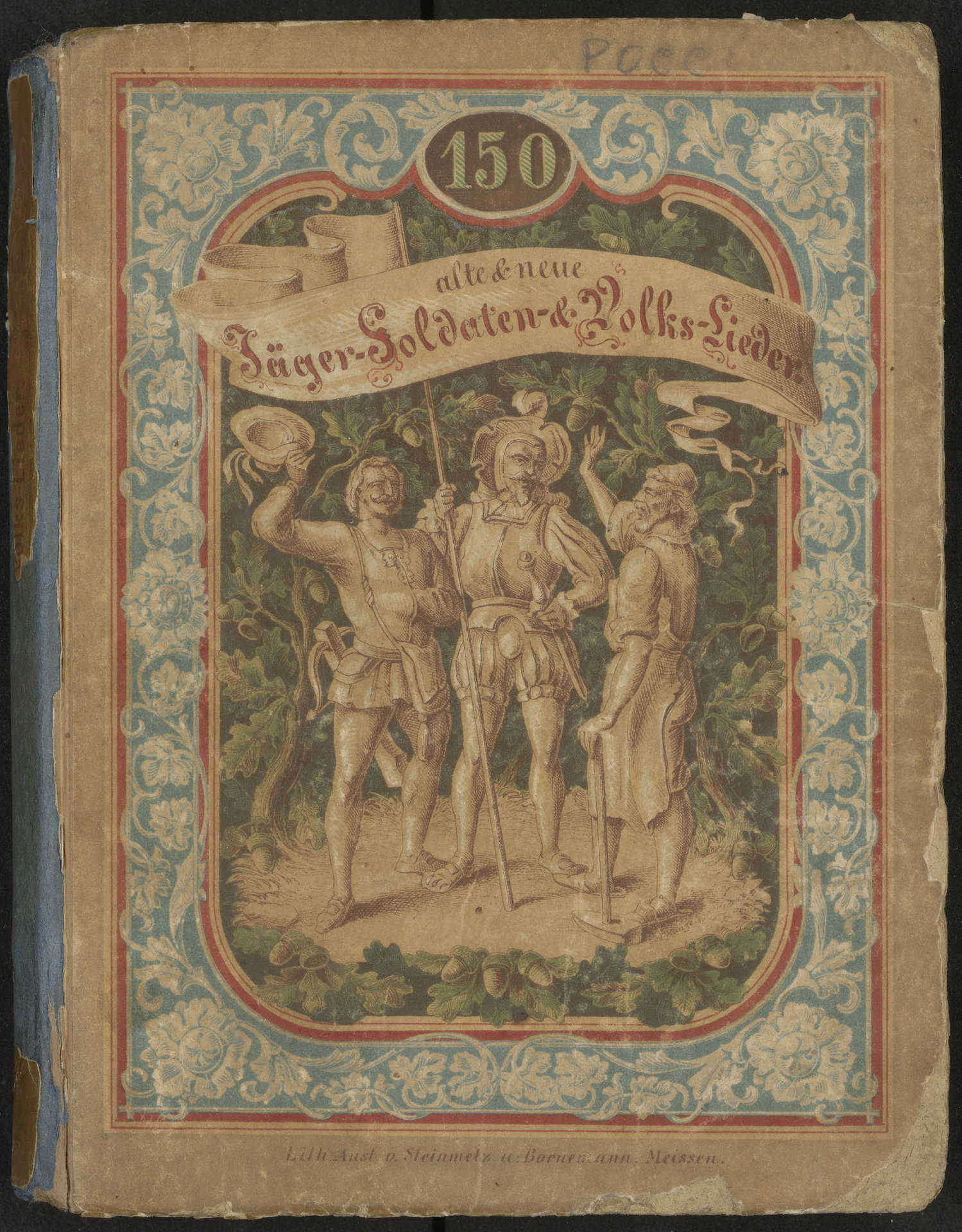 Part of 150 alte und neue Jäger-, Soldaten- und Volkslieder mit Bildern und Singweisen. 56 Jägerlieder, 35 Soldatenlieder, 59 Volkslieder