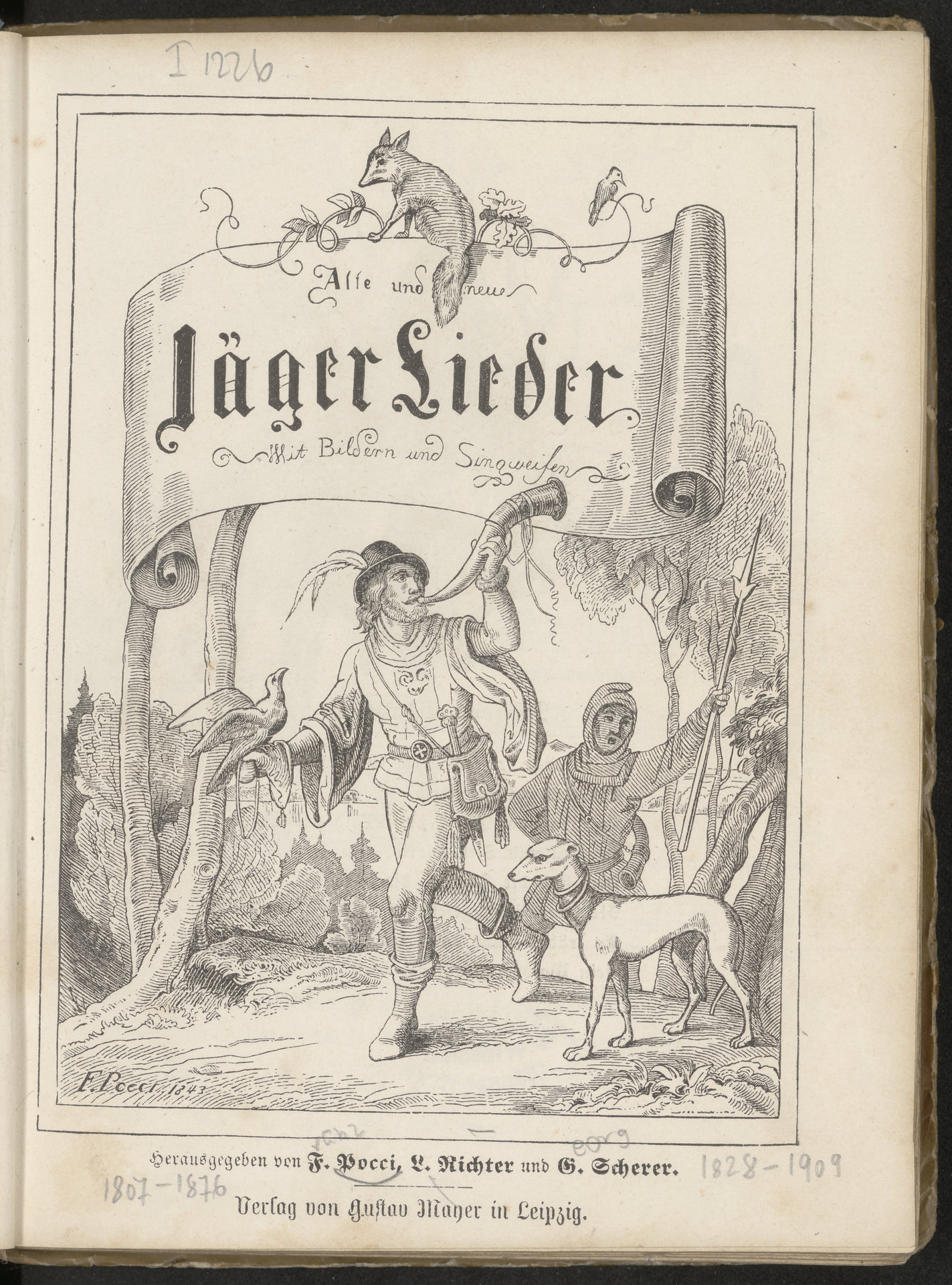 Part of 150 alte und neue Jäger-, Soldaten- und Volkslieder mit Bildern und Singweisen. 56 Jägerlieder, 35 Soldatenlieder, 59 Volkslieder