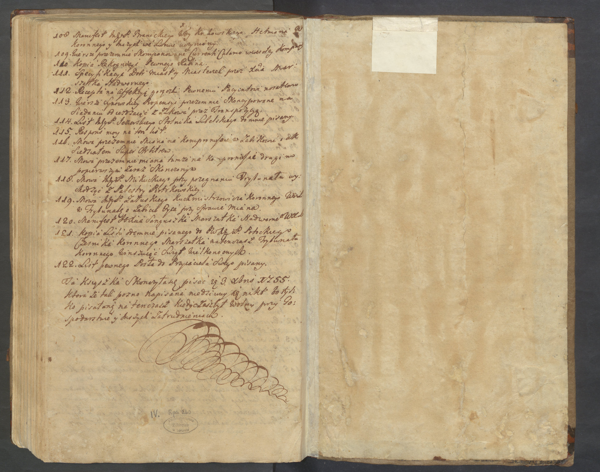 Księga roznych lystow mow w roznych materyach przeze mnie pisanych y mianych oraz y cudzych... - wyklejka dolnej okładziny
