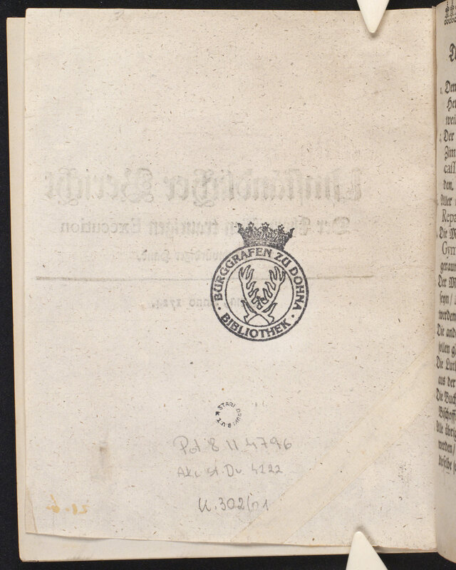 Umständlicher Bericht Der Thornischen traurigen Execution von glaubwürdiger Hand - strona verso z pieczątką