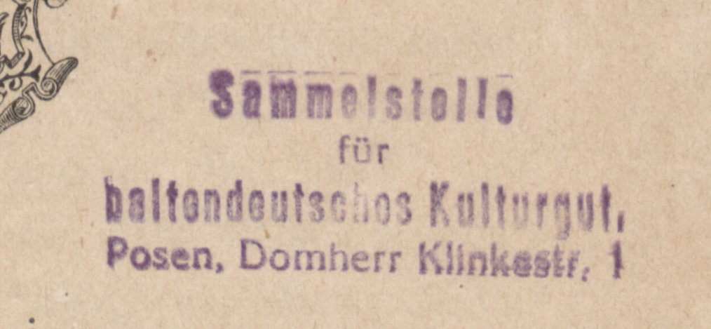 Russland und die Juden - pieczątka "Sammelstelle für baltendeutsches Kulturgut. Posen, Domherr Klinkestr. 1"