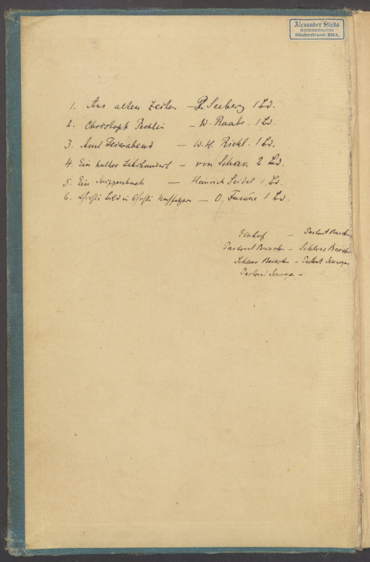 Aus alten Zeiten : Lebensbilder aus Kurland - wyklejka z naklejką wydawcy: Alexander Stieda. Buchhandlung