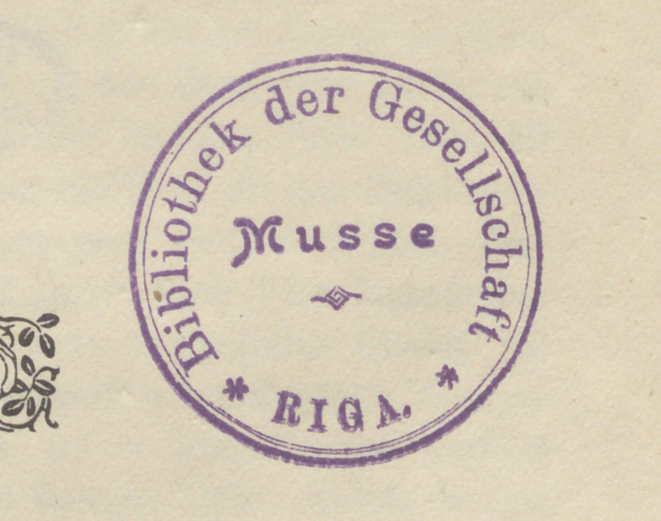 Dynamit ; Erdboden - pieczątka okrągła „Bibliothek der Gesellschaft Mussee Riga”