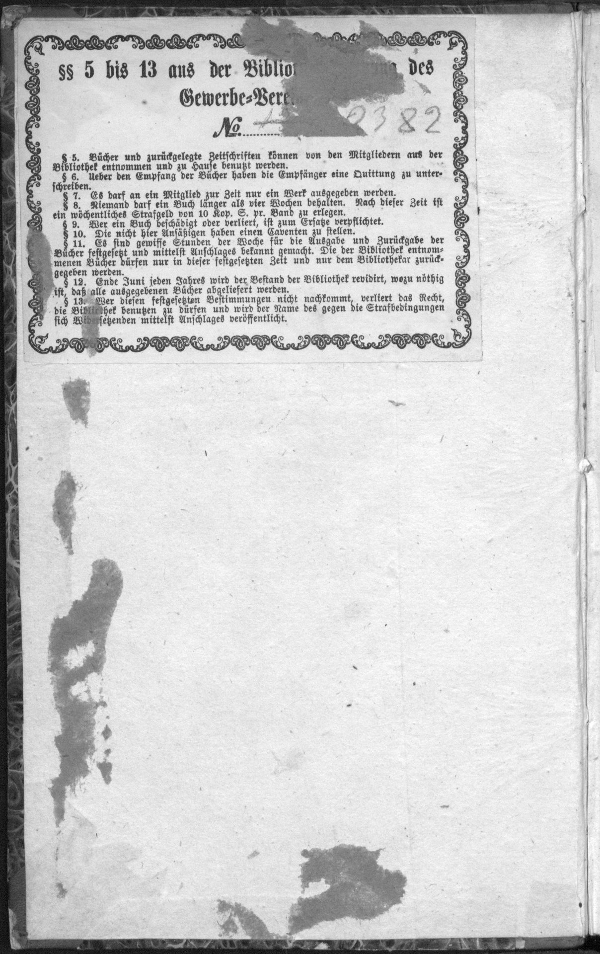 Materialien zu einer Geschichte der Landgüter Livlands - naklejka z regulaminem ryskiej „Bibliothek des Gewerbe-Vereins”