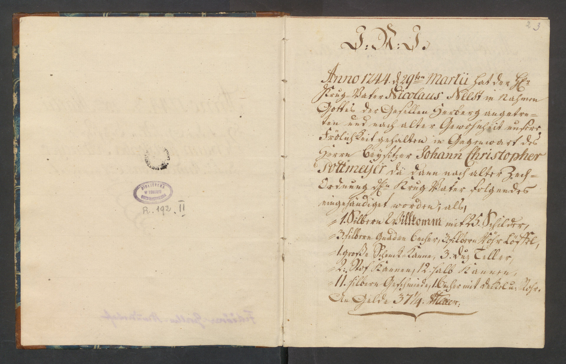 Annotations-Buch der Festbäcker-Gesellen-Brüderschaft zu Riga von 1744-1841 - pierwsza strona rękopisu