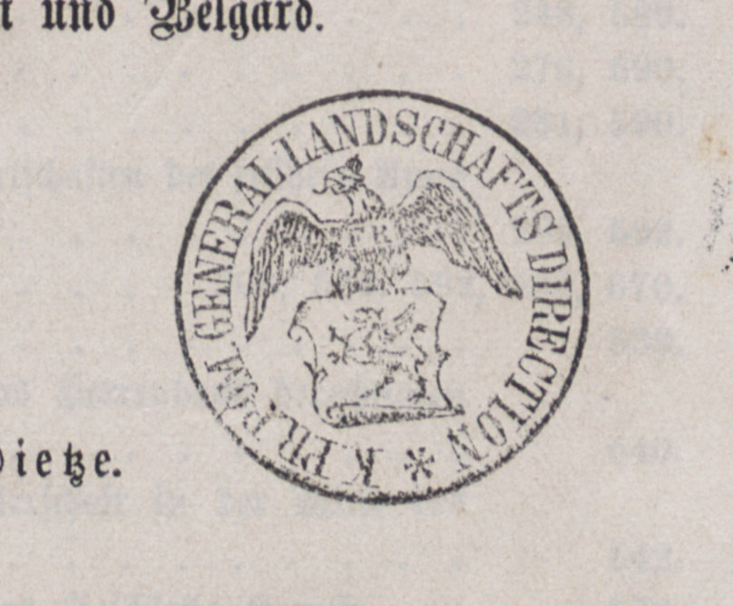 Landbuch des Herzogthums Kaschubien und der einverleibten Kreise der Neümark... - pieczątka okrągła "K. PR. POM. GENERALLANDSCHAFTSDIRECTION"