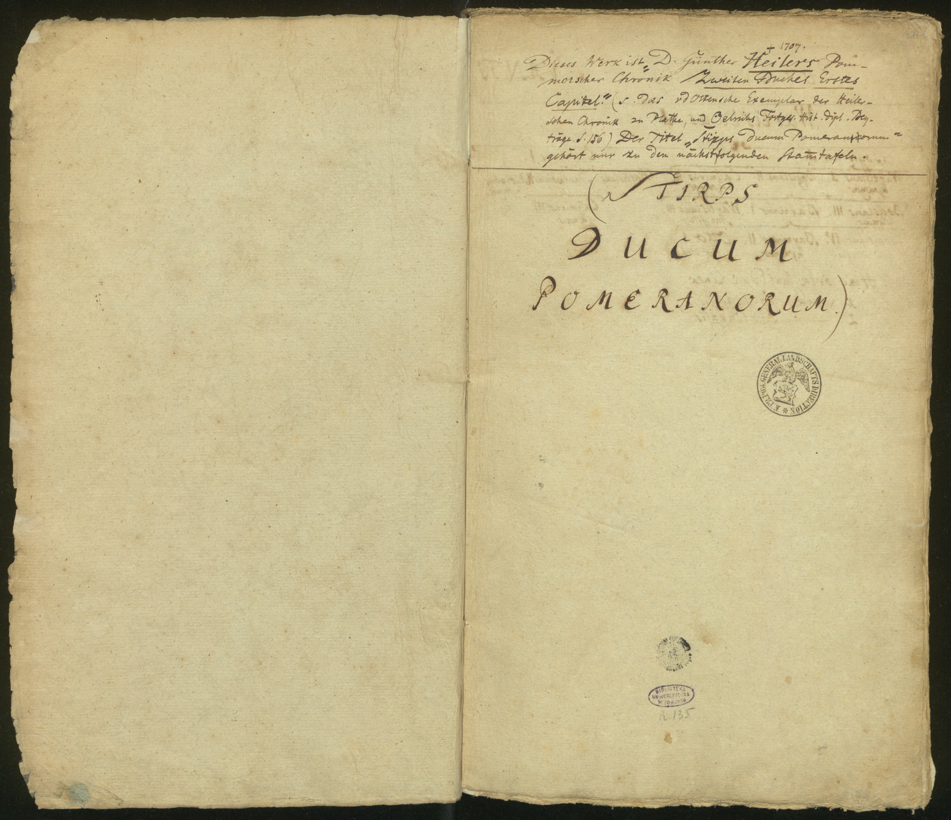 Chronik von Pommern - pierwsza strona rękopisu