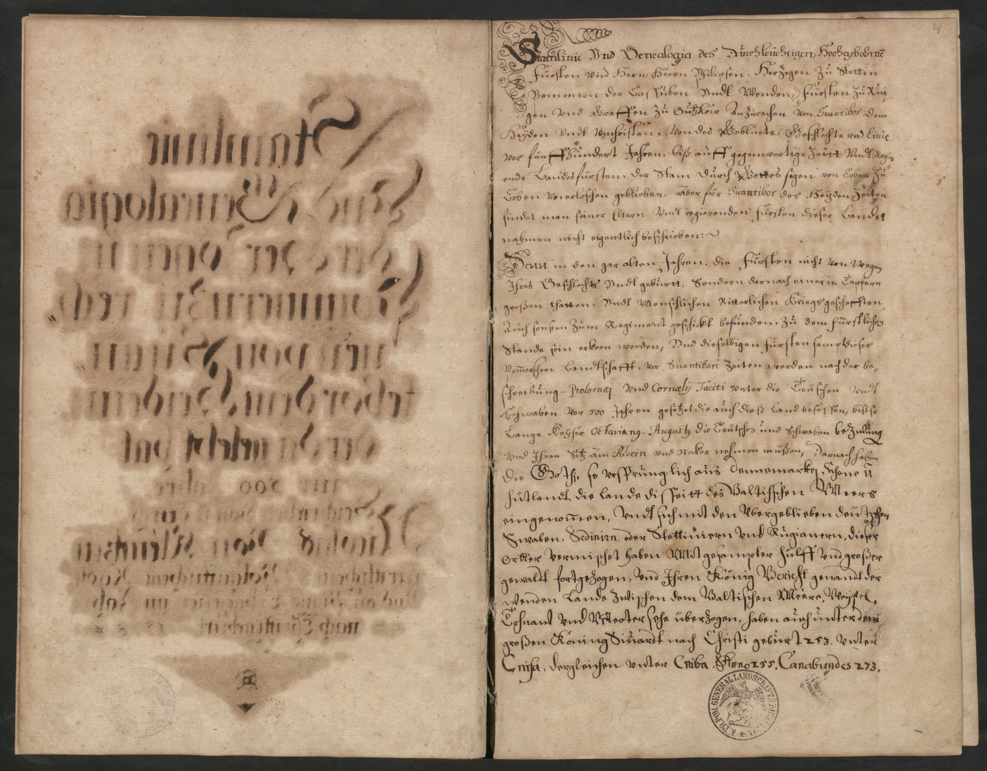 Pommer-Lande und dessen Fürsten Geschlecht-Beschreibung in IV Büchern - pieczęć Generalnej Dyrekcji Ziemstwa Kredytowego w Szczecinie na karcie 4 recto