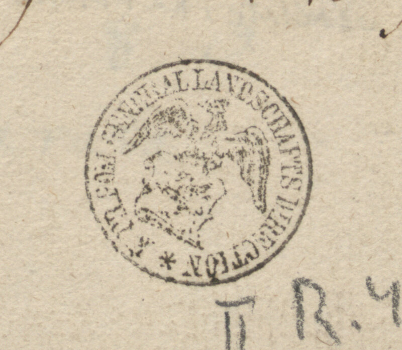 Epitome Chronicorum Pomeraniae ex contextu… Johannis Bugenhagii… exarata - pieczęć Generalnej Dyrekcji Ziemstwa Kredytowego w Szczecinie na karcie 1 recto
