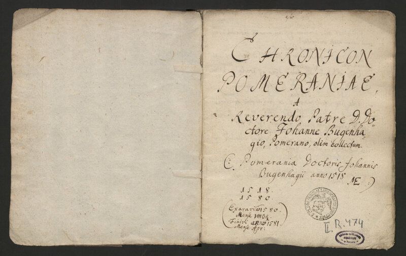 Part of Epitome Chronicorum Pomeraniae ex contextu… Johannis Bugenhagii… exarata