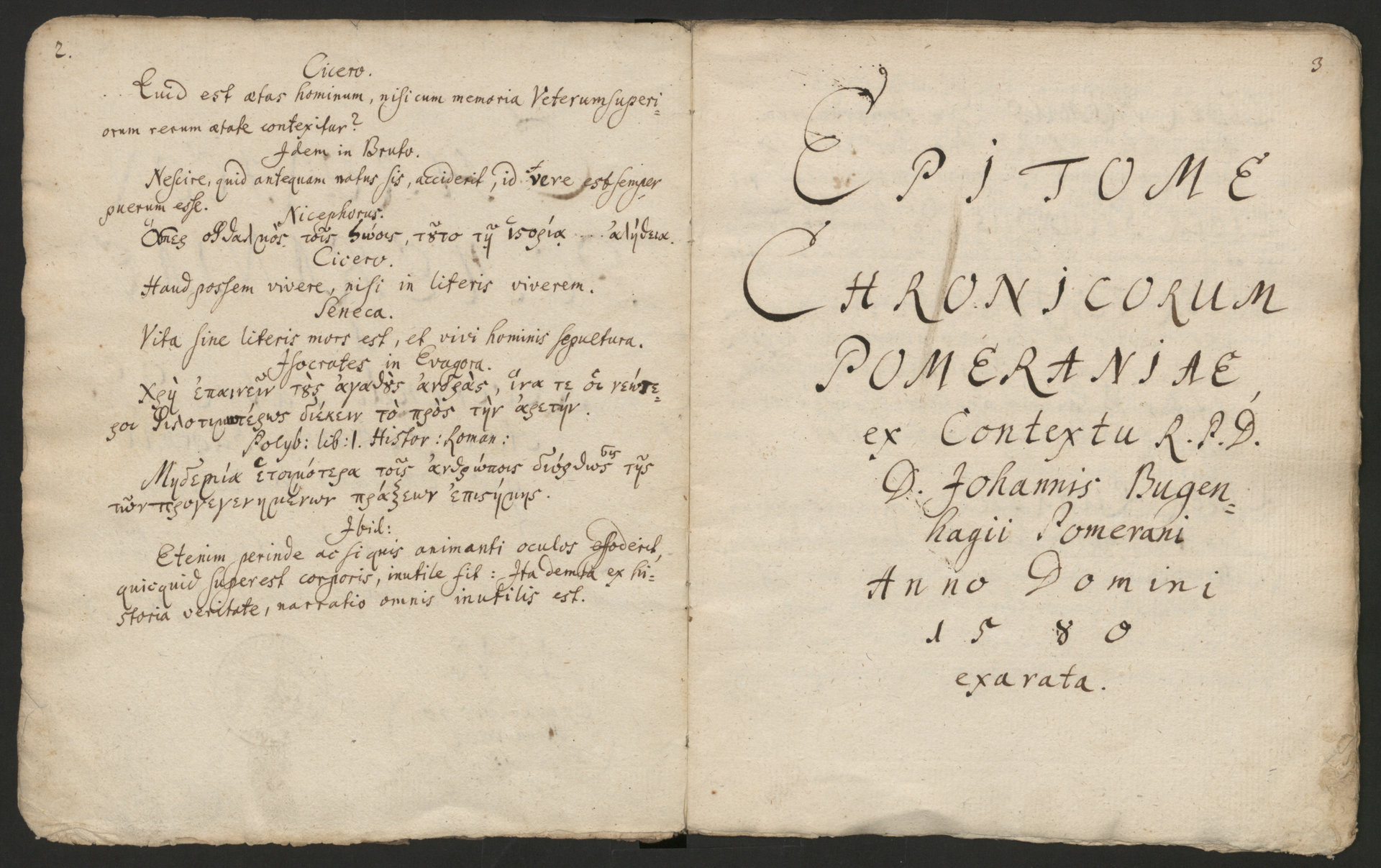 Part of Epitome Chronicorum Pomeraniae ex contextu… Johannis Bugenhagii… exarata