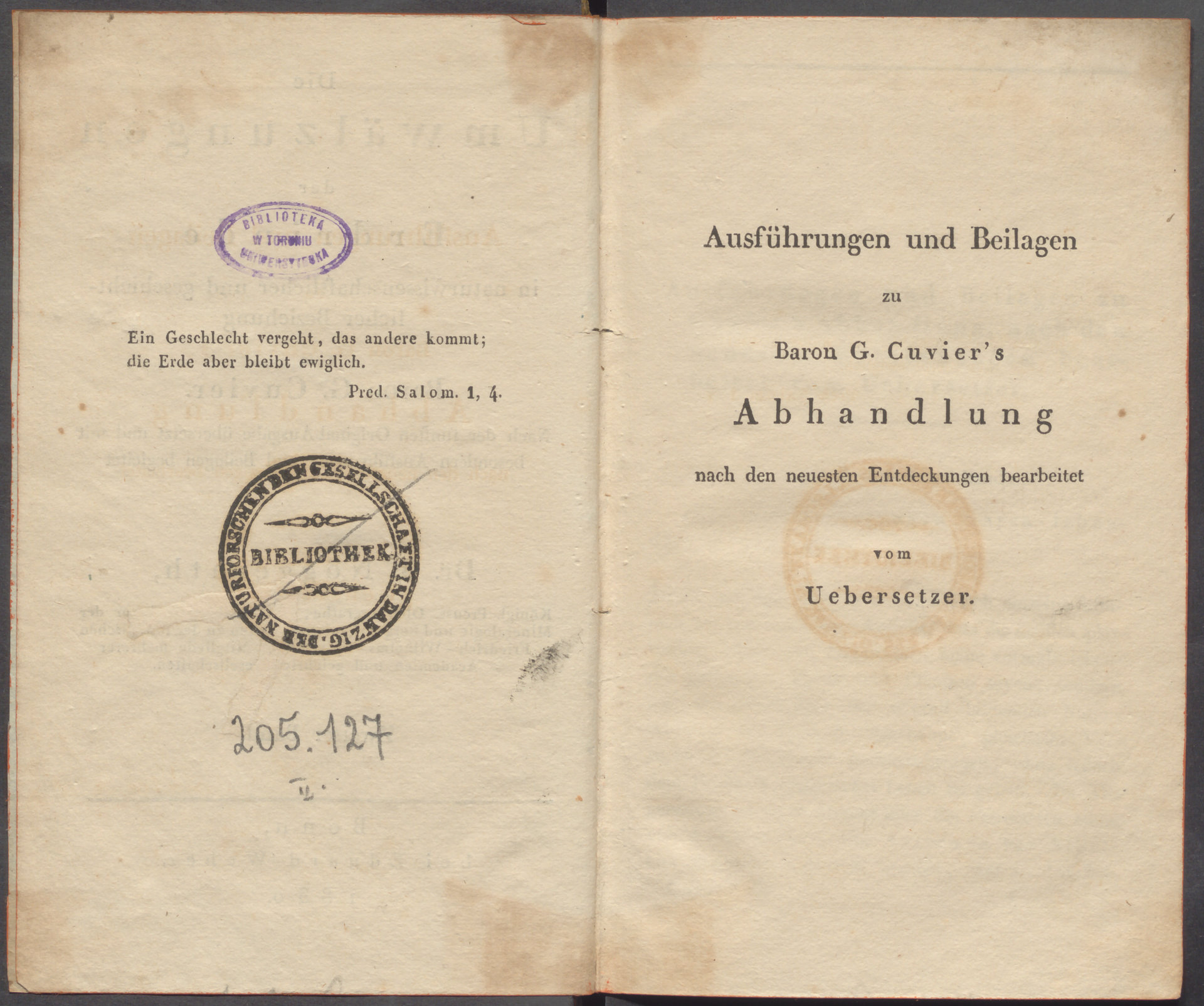Die Umwälzungen der Erdrinde in naturwissenschaftlicher und geschichtlicher Beziehung. Bd. 2 - strona z pieczątką