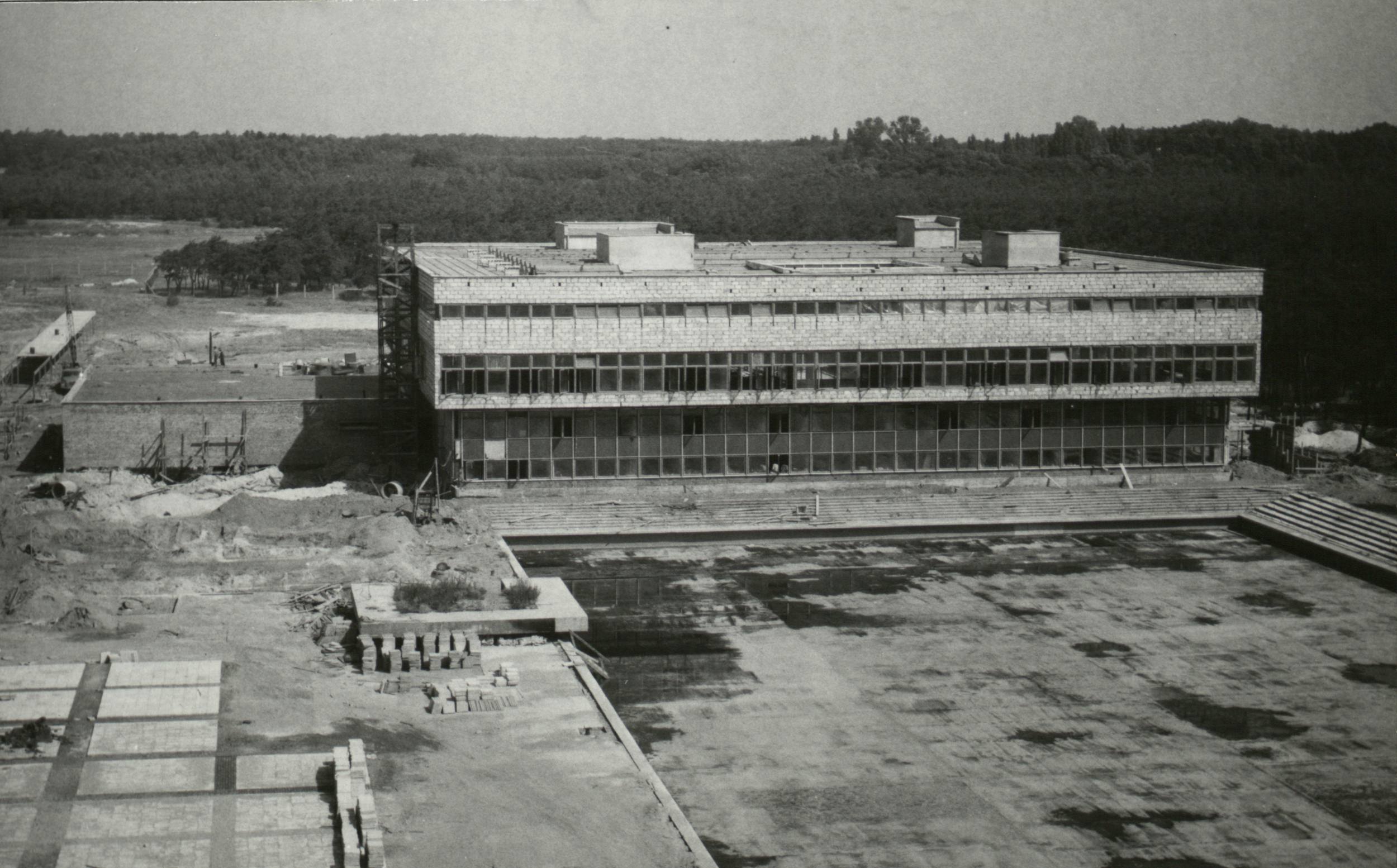 Budowa nowego gmachu BU UMK w miasteczku akademickim na Bielanach, ok. 1972 r.
