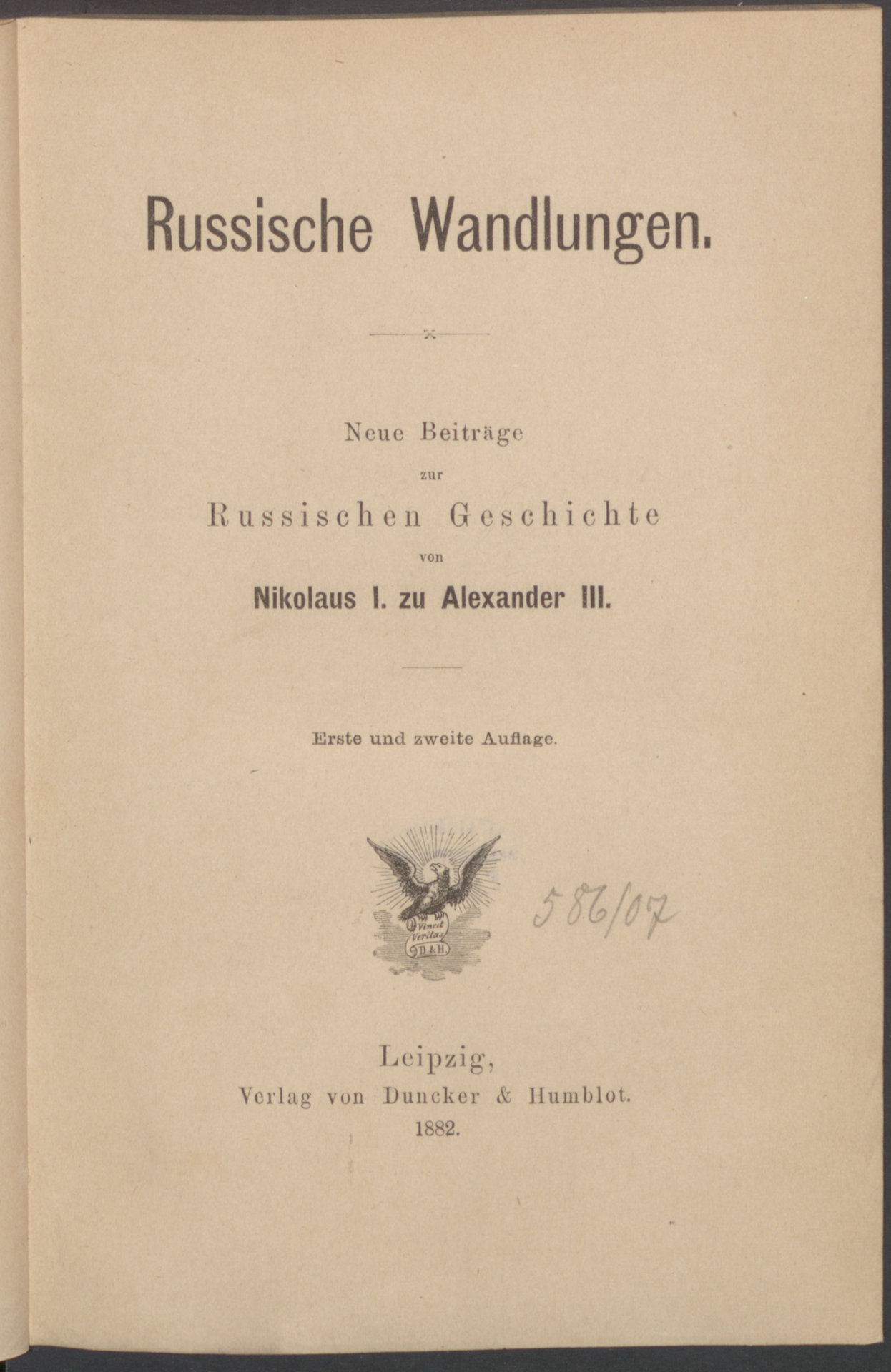 Russische Wandlungen : neue Beiträge zur russischen Geschichte von Nikolaus I. zu Alexander III - strona tytułowa
