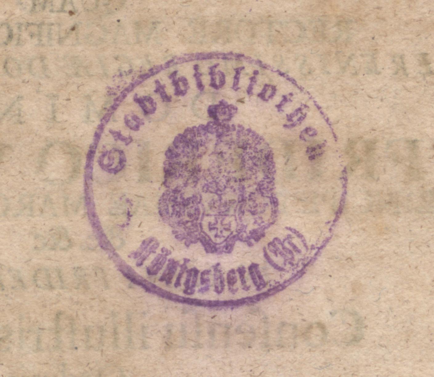 Dissertatio Iuridica Inauguralis De Origine Et Progressu Poenae Adulterarum Apud Romanos - okrągła pieczątka: Stadtbibliothek Königsberg (Pr)