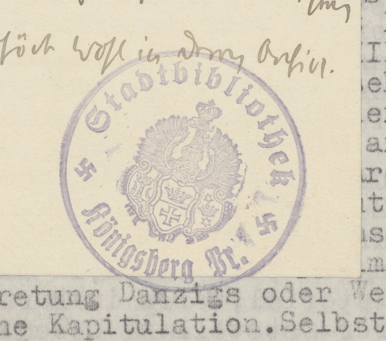 Der Winter 1918/1919 in Königsberg insbes. die Entstehungsgeschichte der Volkshochschule von Hermann Witte - pieczątka okrągła: Stadtbibliothek Königsberg Pr.