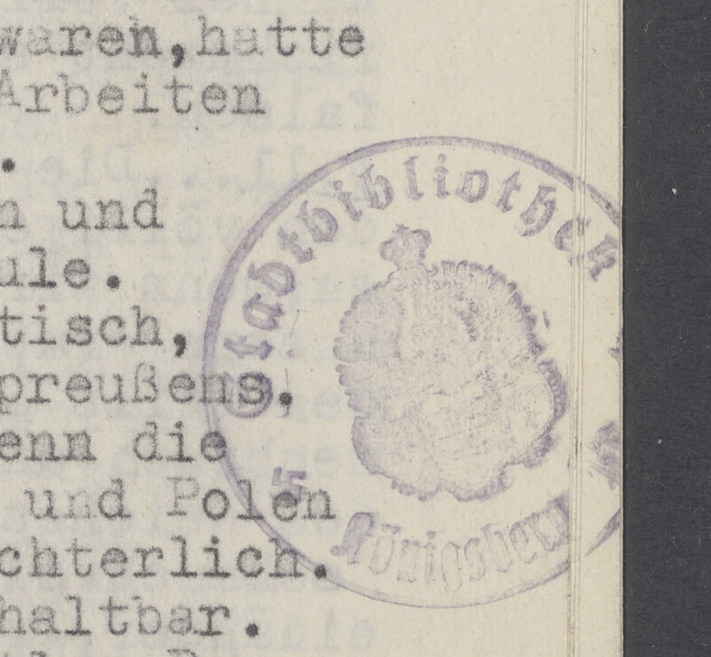 Der Winter 1918/1919 in Königsberg insbes. die Entstehungsgeschichte der Volkshochschule von Hermann Witte - pieczątka okrągła: Stadtbibliothek Königsberg Pr.