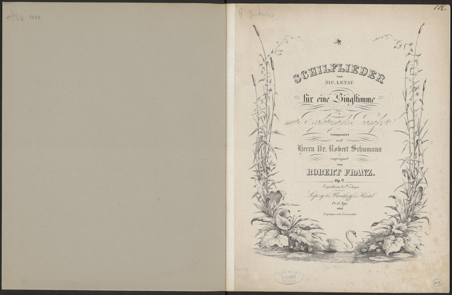 Schilflieder von Nic. Lenau für eine Singstimme mit Begleitung des Pianoforte componirt und Herrn Dr. Robert Schumann zugeeignet : Op. 2 - sygnatura ołówkowa Mx1383