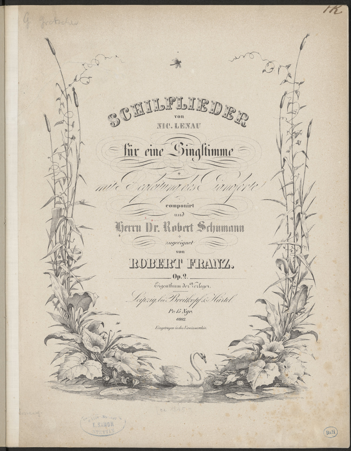 Schilflieder von Nic. Lenau für eine Singstimme mit Begleitung des Pianoforte componirt und Herrn Dr. Robert Schumann zugeeignet : Op. 2 - strona tytułowa