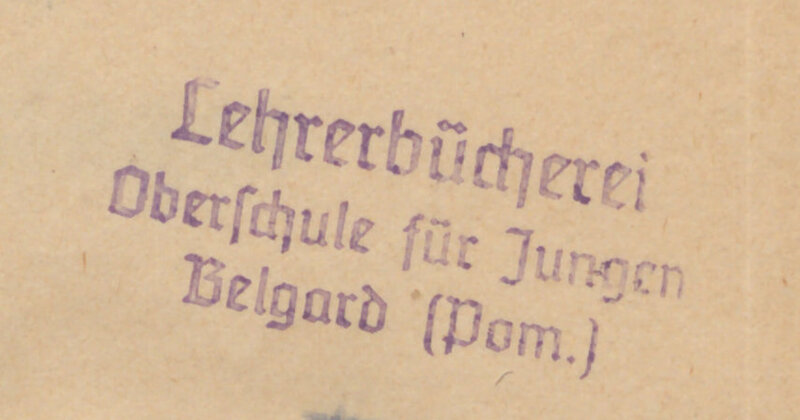 Volkssagen aus Pommern und Rügen - pieczątka prostokątna: Lehrerbücherei Oberschule füü Jungen Belgard