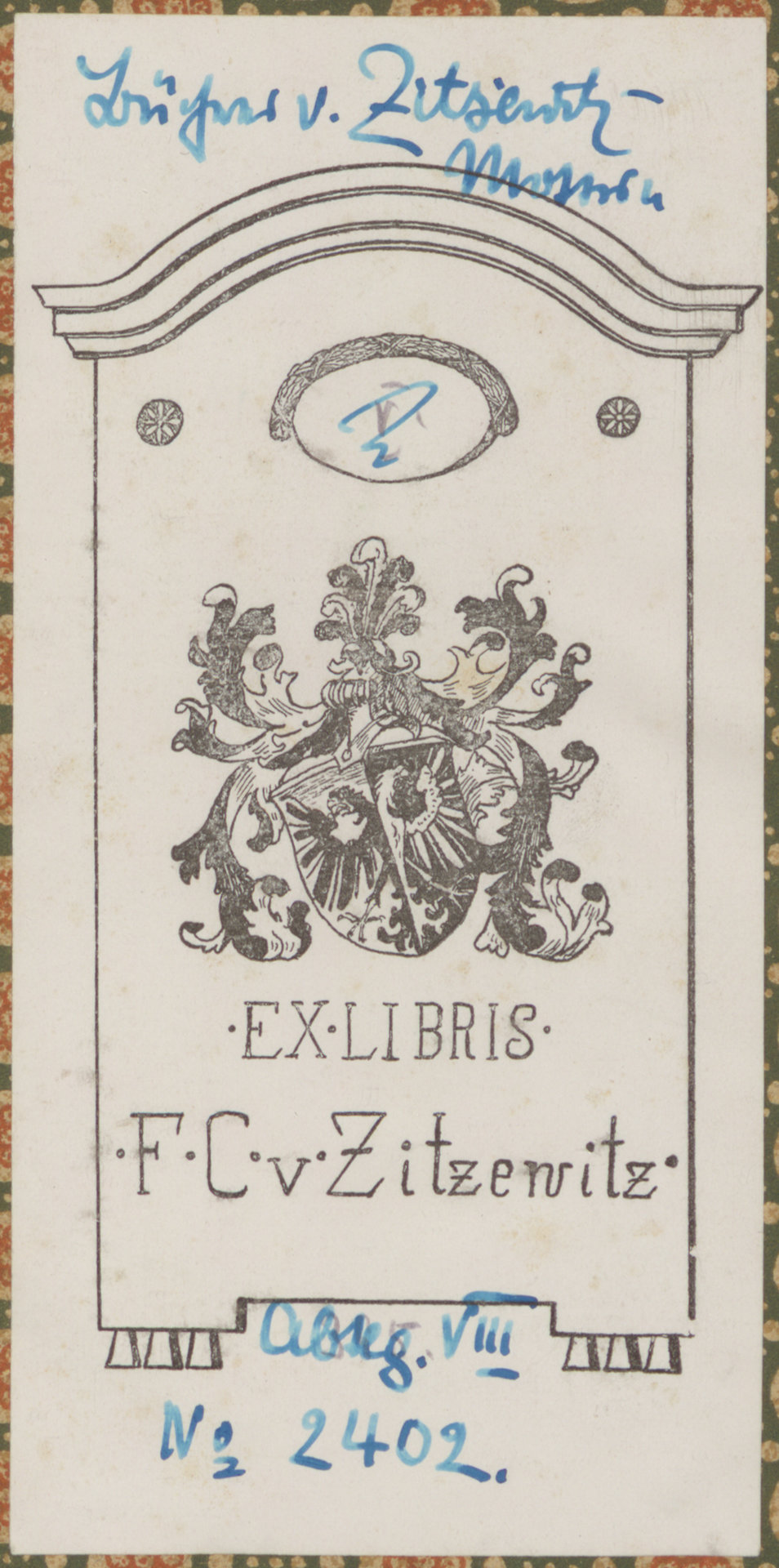 Geschichte und Chronik des Kösener S. C.-Verbandes - ekslibris prostokątny F. C. v. Zitzewitz z podpisem własnościowym