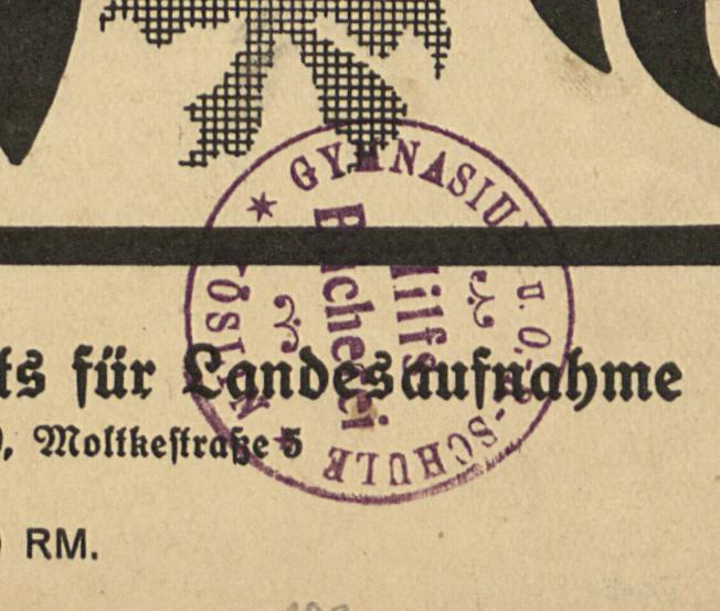 5. Okrągła pieczątka: Gymnasium u. O.-R.-Schule Köslin Hilfs-Bücherei