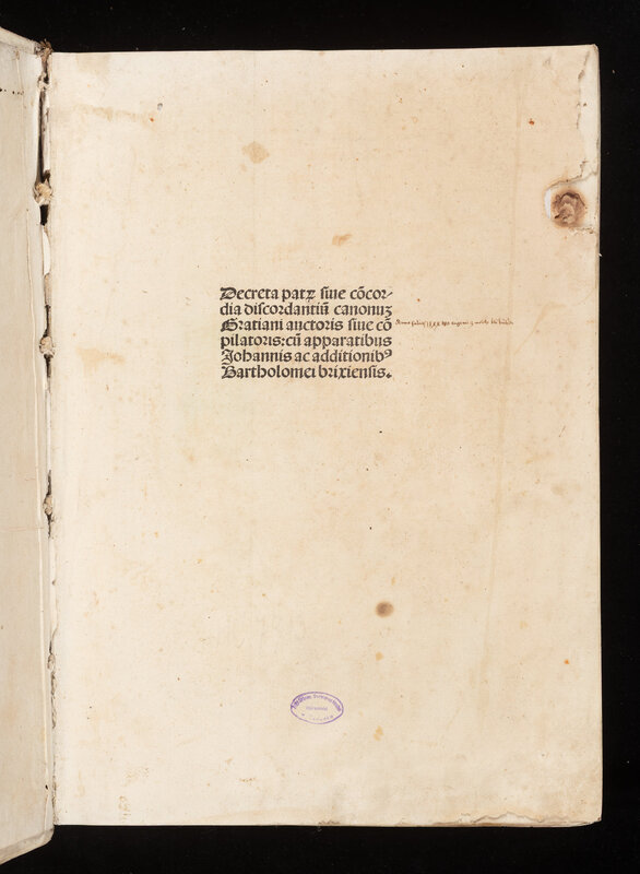 Part of Decretum cum apparatu Bartholomaei Brixensis et Ioannis Semecae