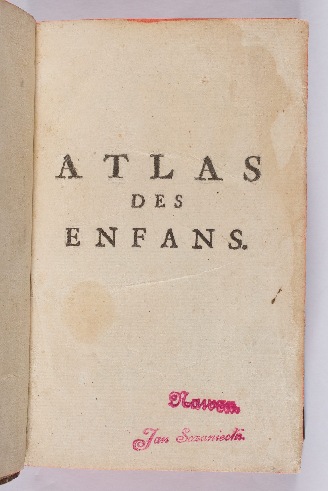 Atlas des enfans, ou methode nouvelle, courte, facile et demonstrative, pour apprendre la geographie... - karta przedtytułowa z pieczątką