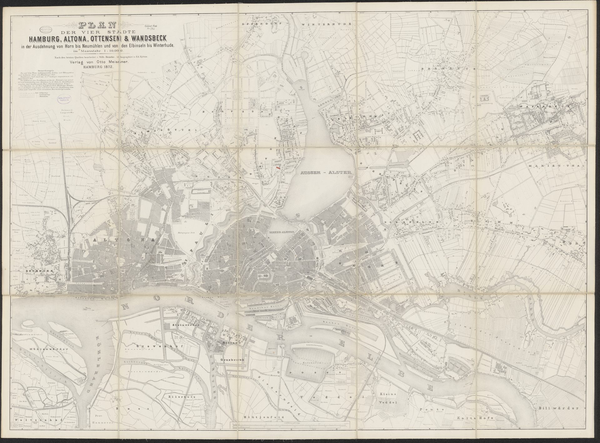 Part of PLAN DER VIER STÄDTE HAMBURG, ALTONA, OTTENSEN & WANDSBECK in der Ausdehnung von Horn bis Neumühlen und von den Elbinseln bis Winterhude, im Maasstabe 1 : 10 000