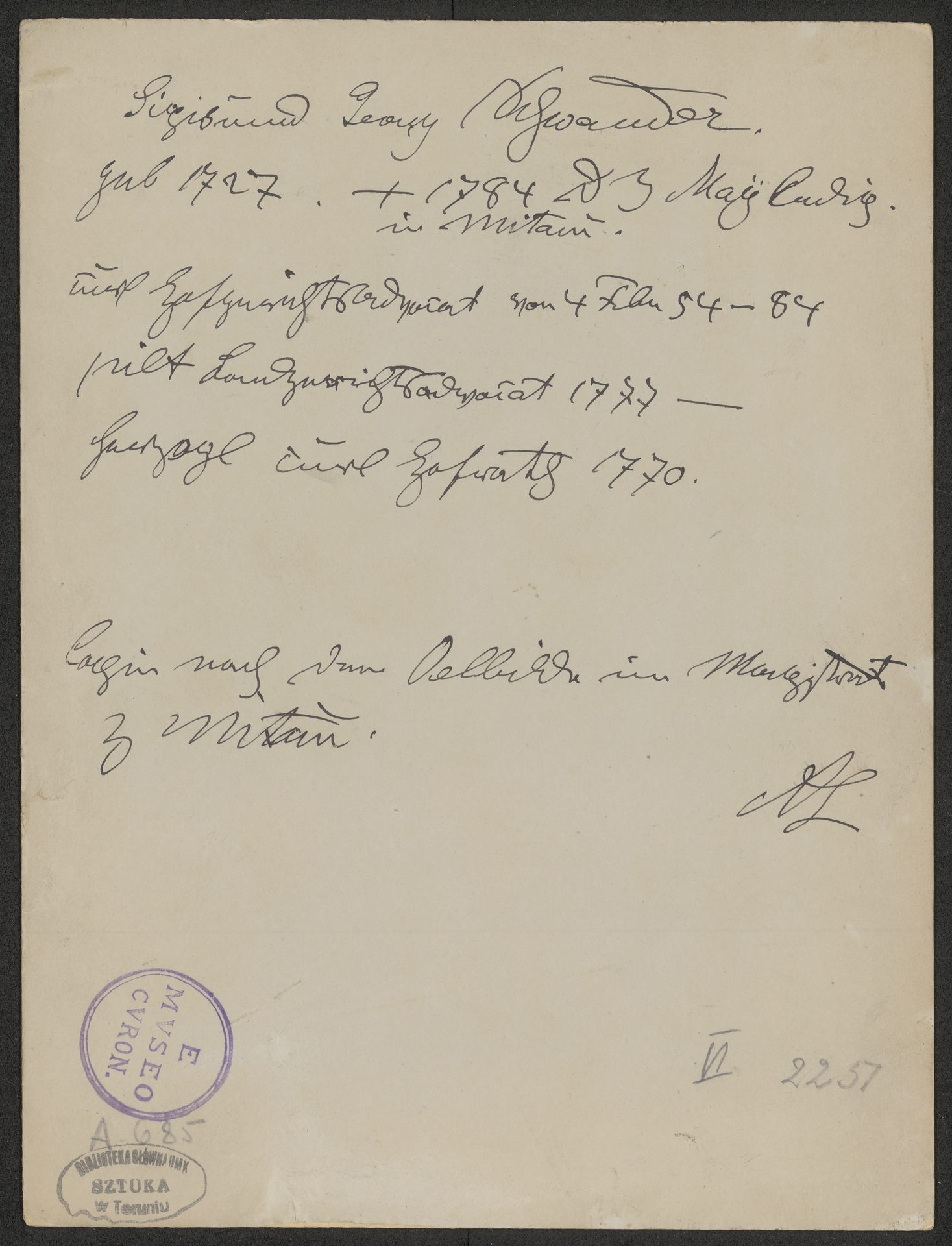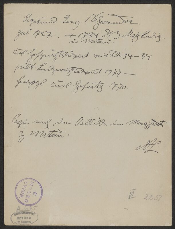 [Portrety książąt kurlandzkich] - zapiski odręczne i pieczątka