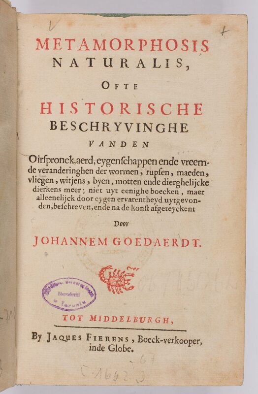 Part of Metamorphosis Naturalis, Ofte Historische Beschryvinghe Vanden Oirspronk, aerd, eygenschappen ende vreemde veranderinghen der wormen, rupsen, maeden, vliegen, witjens, byen, motten ende dierghelijcke dierkens meer ...