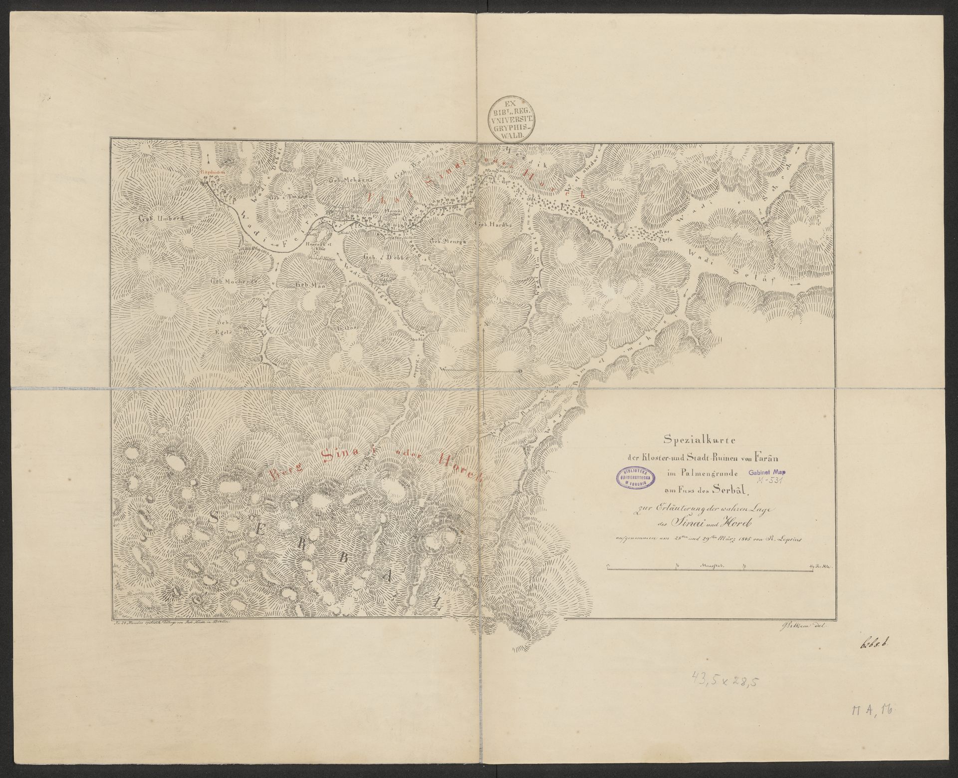 Part of Spezialkarte der Kloster-und Stadt-Ruinen von Farân im Palmengrunde am Fuss des Serbâl