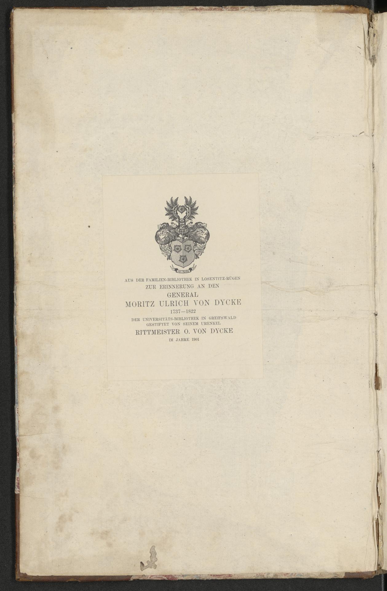 Brak tytułu [Zbiór map całego świata starożytnego i nowożytnego] - strona z ekslibrisem