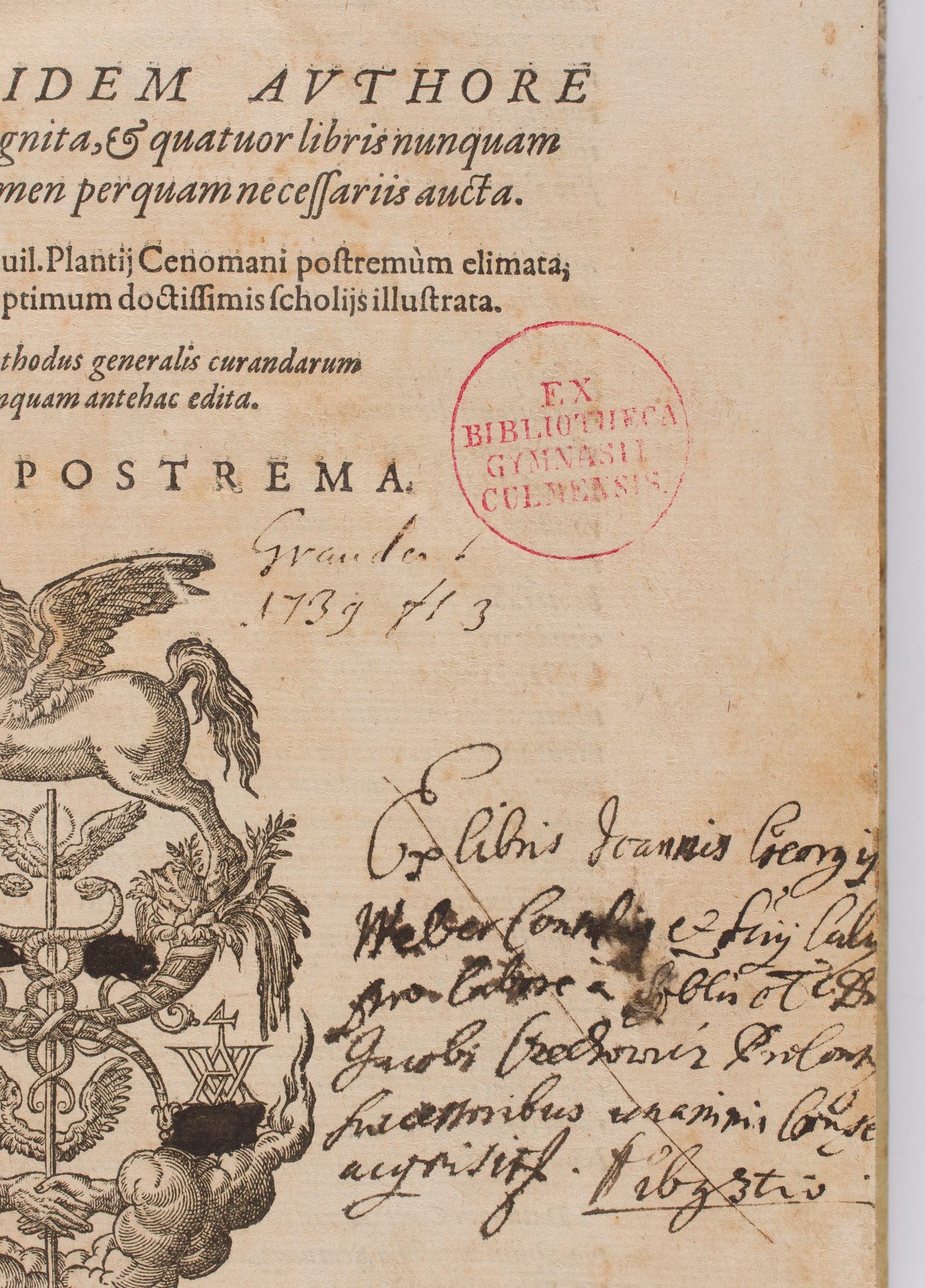 Ioan. Fernelii Ambiani uniuersa Medicina - pieczątka na stronie tytułowej: "Ex Bibliotheca Gymnasii Culmensis"