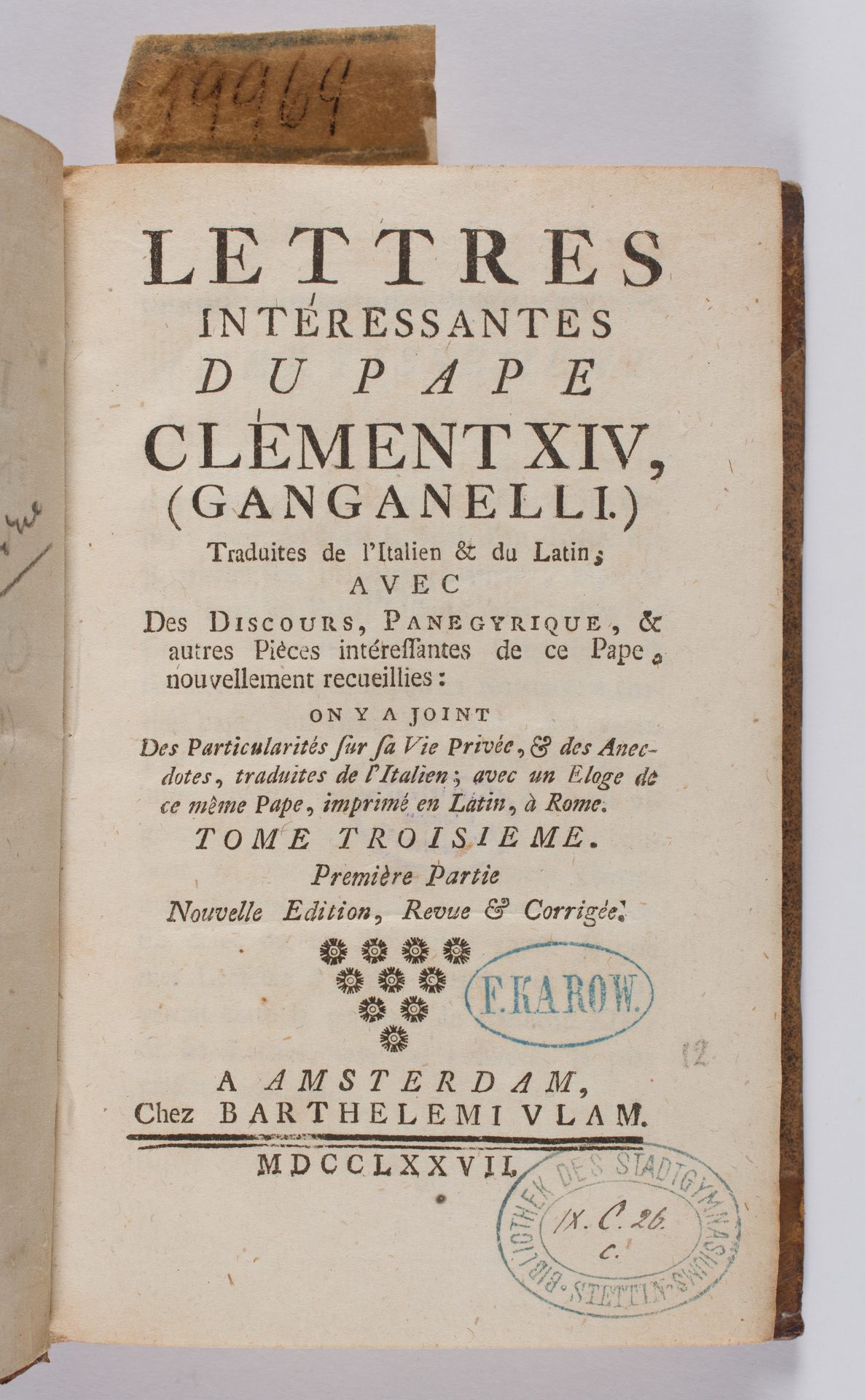Part of Lettres Intérressantes Du Pape Clément XIV, (Ganganelli). T. 3, P. 1.