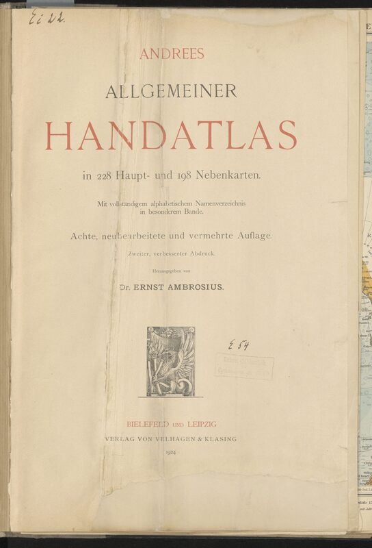 Part of Andrees allgemeiner Handatlas in 228 Haupt- und 198 Nebenkarten. Achte neubearbeitete und vermehrte Auflage.