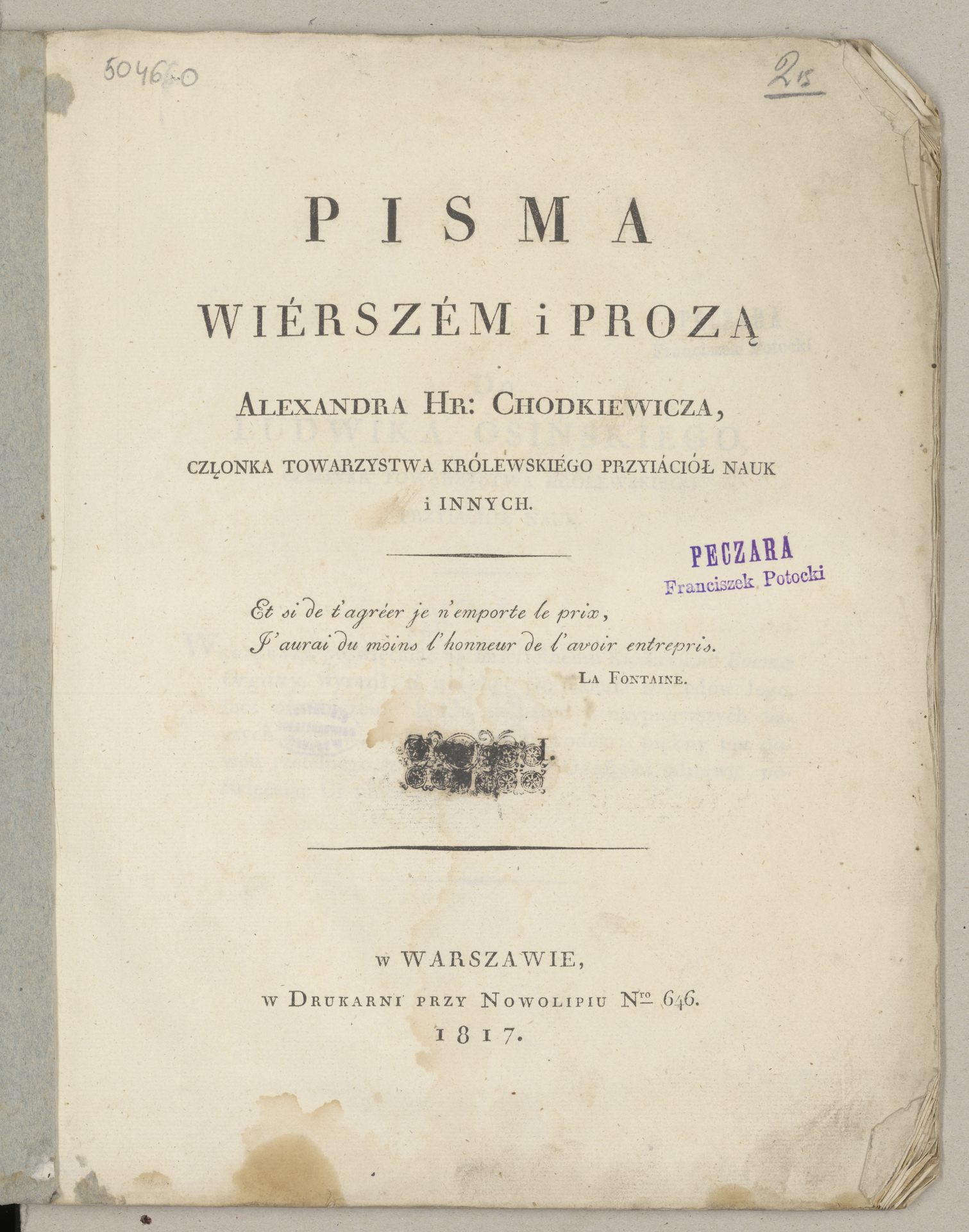 Pisma wiérszém i prozą - strona tytułowa