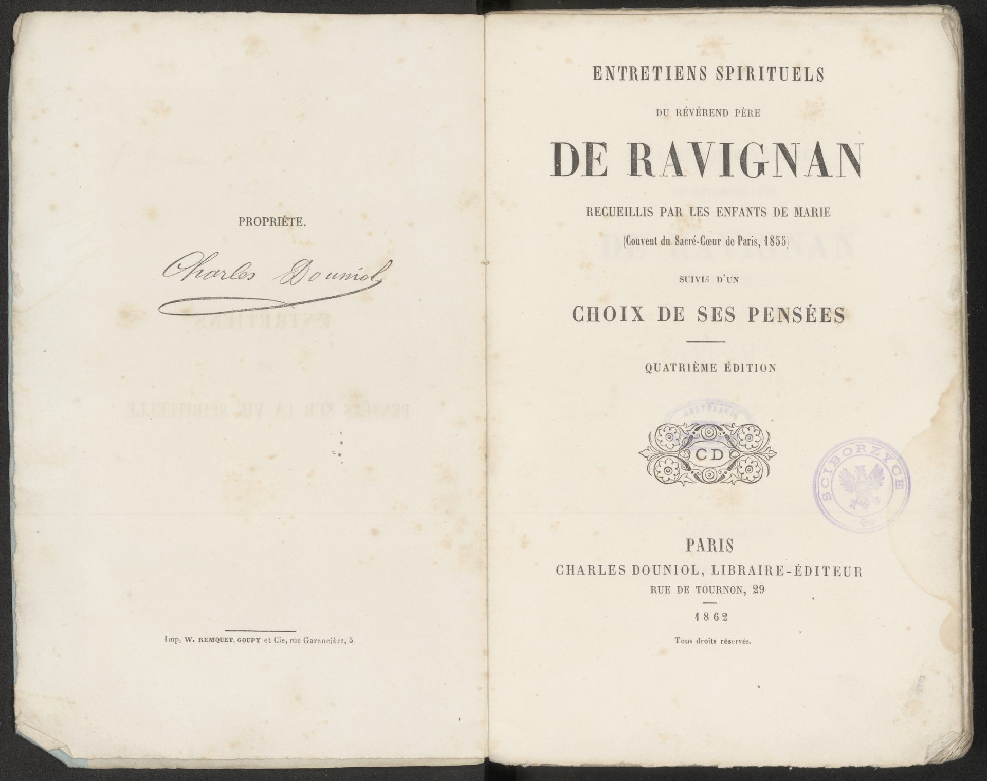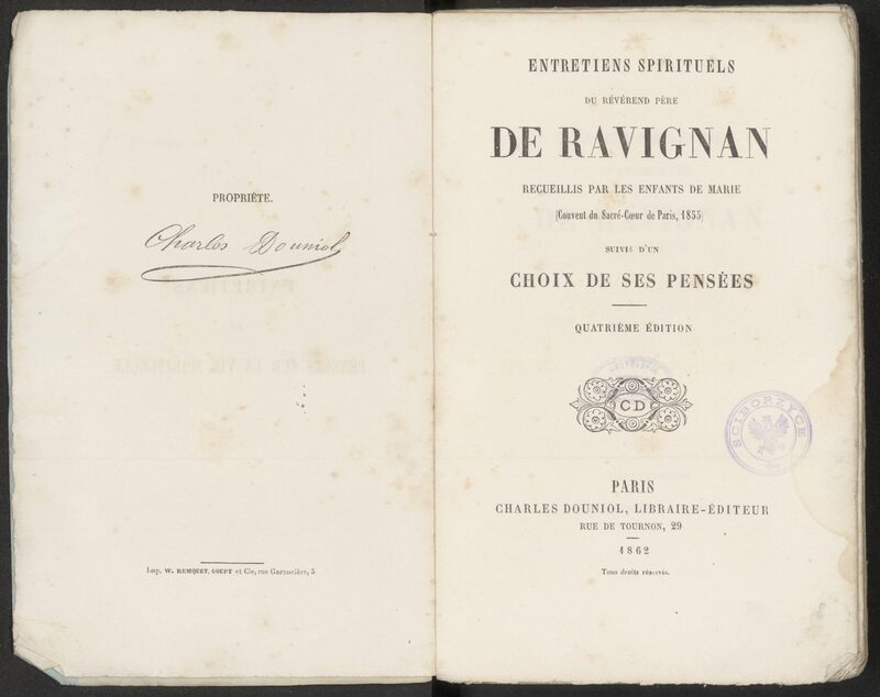 Entretiens spirituels du révérend père de Ravignan - strona przedtytułowa i tytułowa