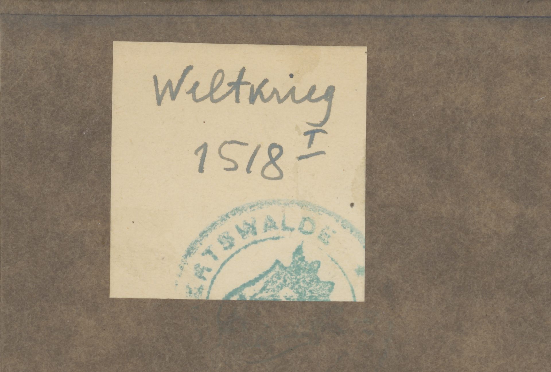 Der Krieg und die grosse Politik. Bd. 1 - naklejka (fragment) z sygnaturą, nazwą działu biblioteki oraz fragmentem pieczęci