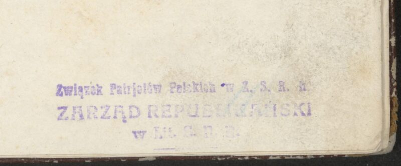 Wędrówki po moich niegdyś okolicach : wspomnienia, studja historyczne i obyczajowe - pieczątka prostokatna: Związek Patrjotów Polskich w Z.S.R.R. Zarząd Republikański w Lit. S.R.R.