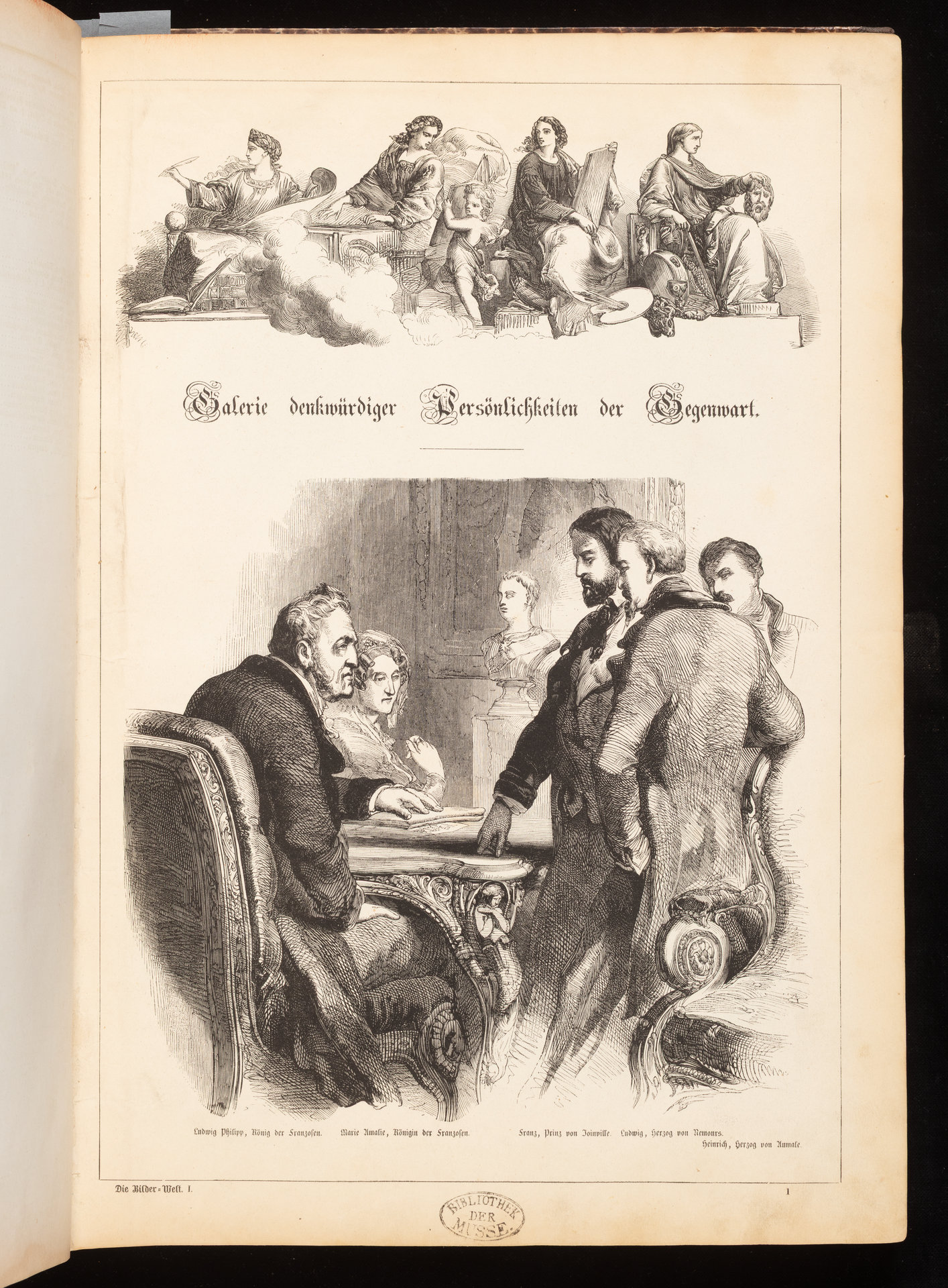 Galerie denkwürdiger Persönlichkeiten der Gegenwart. Nach Originalzeichnungen, Gemälden, Statuen und Medaillen - pieczątka owalna: Bibliothek Der Musse