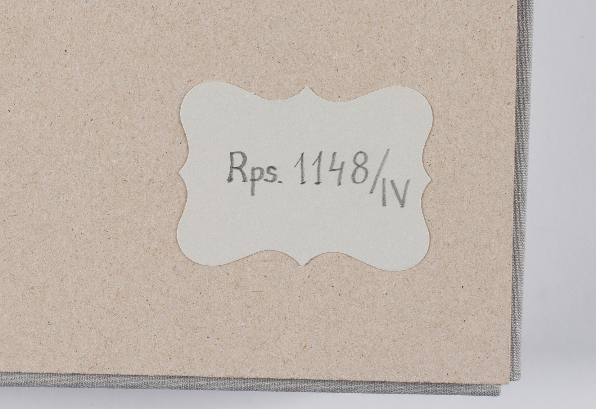 Akta, w tym inwentarze i katalogi biblioteki Gimnazjum Mariackiego w Szczecinie, zebrane przez Johanna Carla Conrada Oelrichsa. - nalepka z sygnaturą