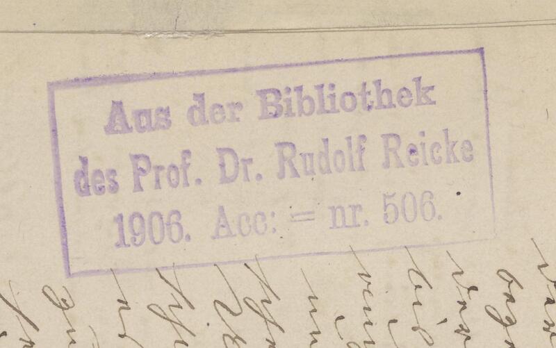 Vocale und instrumentale Musikaufführungen in Elbing vom J. 1800 bis 1864 - pieczęć prostokątna: Aus der Bibliothek des Prof. Dr. Rudolf Reicke 1906 Acc. nr 506 (k. 1r)